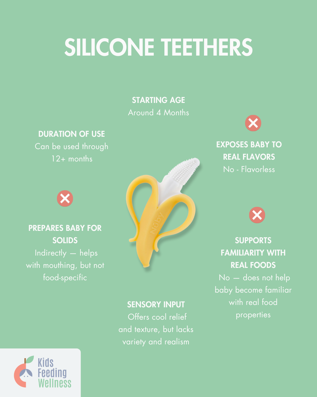 Most parents reach for silicone or plastic teethers when their baby starts teething — and they do help with comfort. But here’s the thing: they don’t offer real flavor, texture, or early sensory experiences that build confident eating skills.